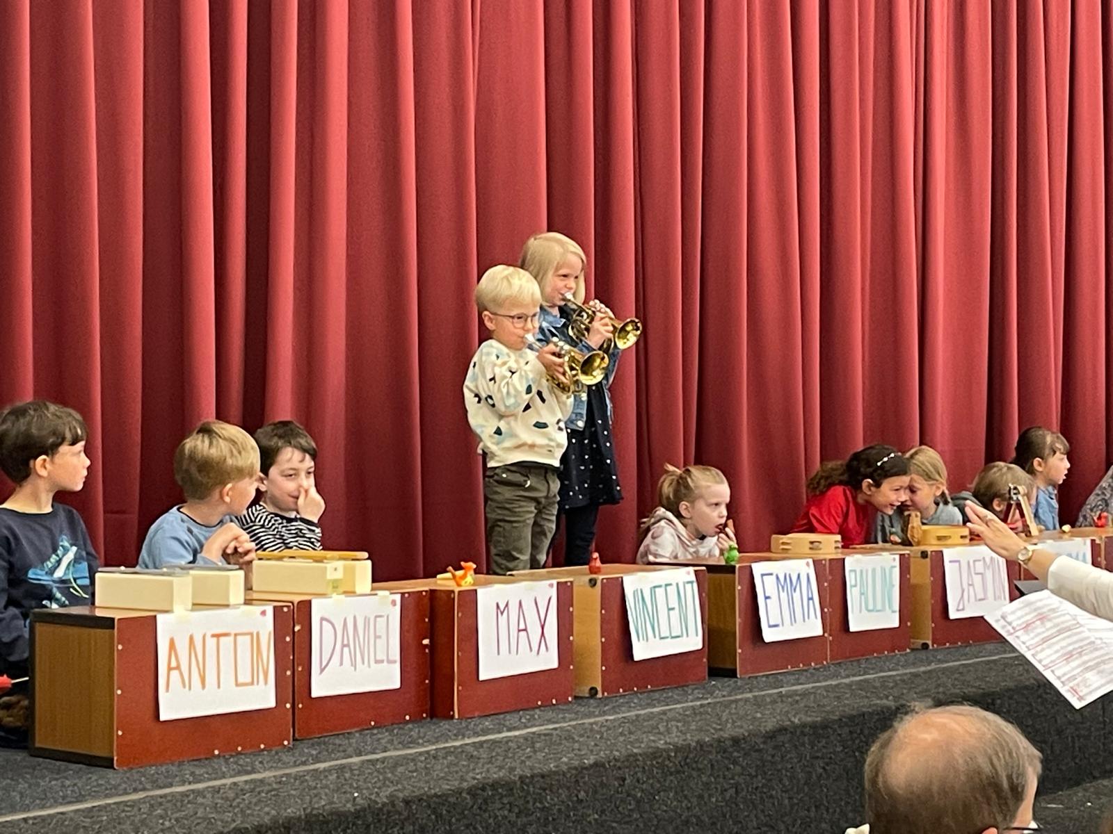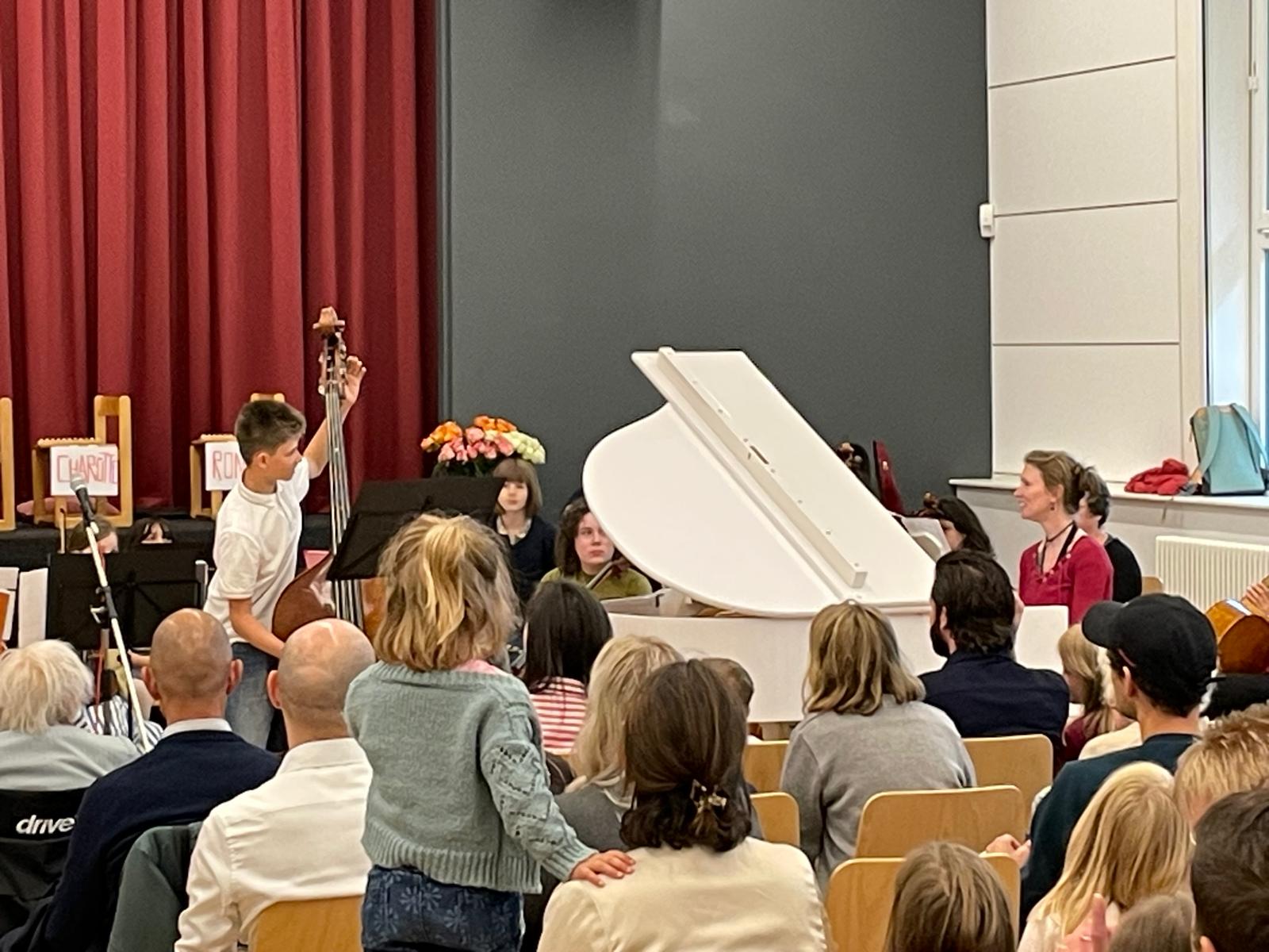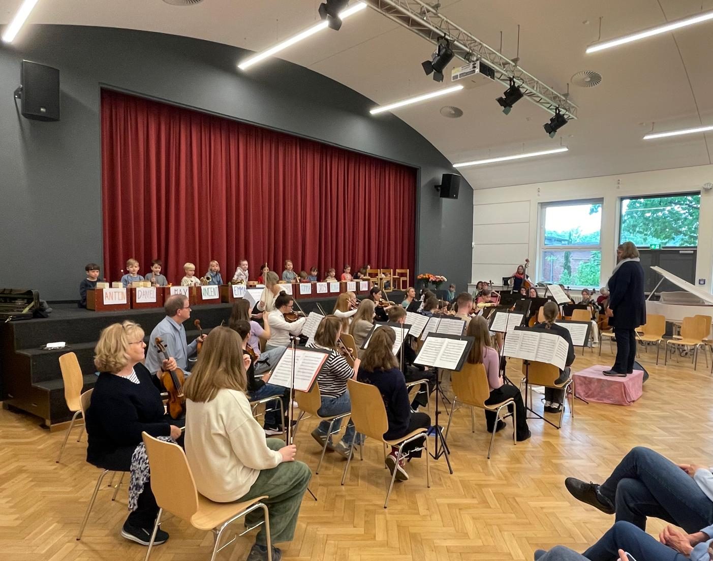 Als Besonderheit musizierten das Orchester „Frisch gestrichen“ und die „Stader Stadtmusikanten“ unter der Leitung von Solveig Rodenbusch, sowie das Kammerorchester Jork unter der Leitung von Sigrid Walliser mit Kindern der Musikalischen Früherziehung von Malgorzata Seewald die Kindersinfonie von Leopold Mozart. Eine tolle musikalische Leistung! Während dieses Stückes durften Kinder aus dem Publikum mitten im Orchester Platz nehmen, um das Geschehen hautnah mitzuerleben.